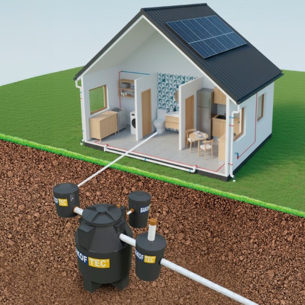 A ETE Compacta Individual Anaeróbia Bakof consiste em 4 etapas de tratamento, sendo gradeamento, módulo reator/biofiltro anaeróbio e clorador.